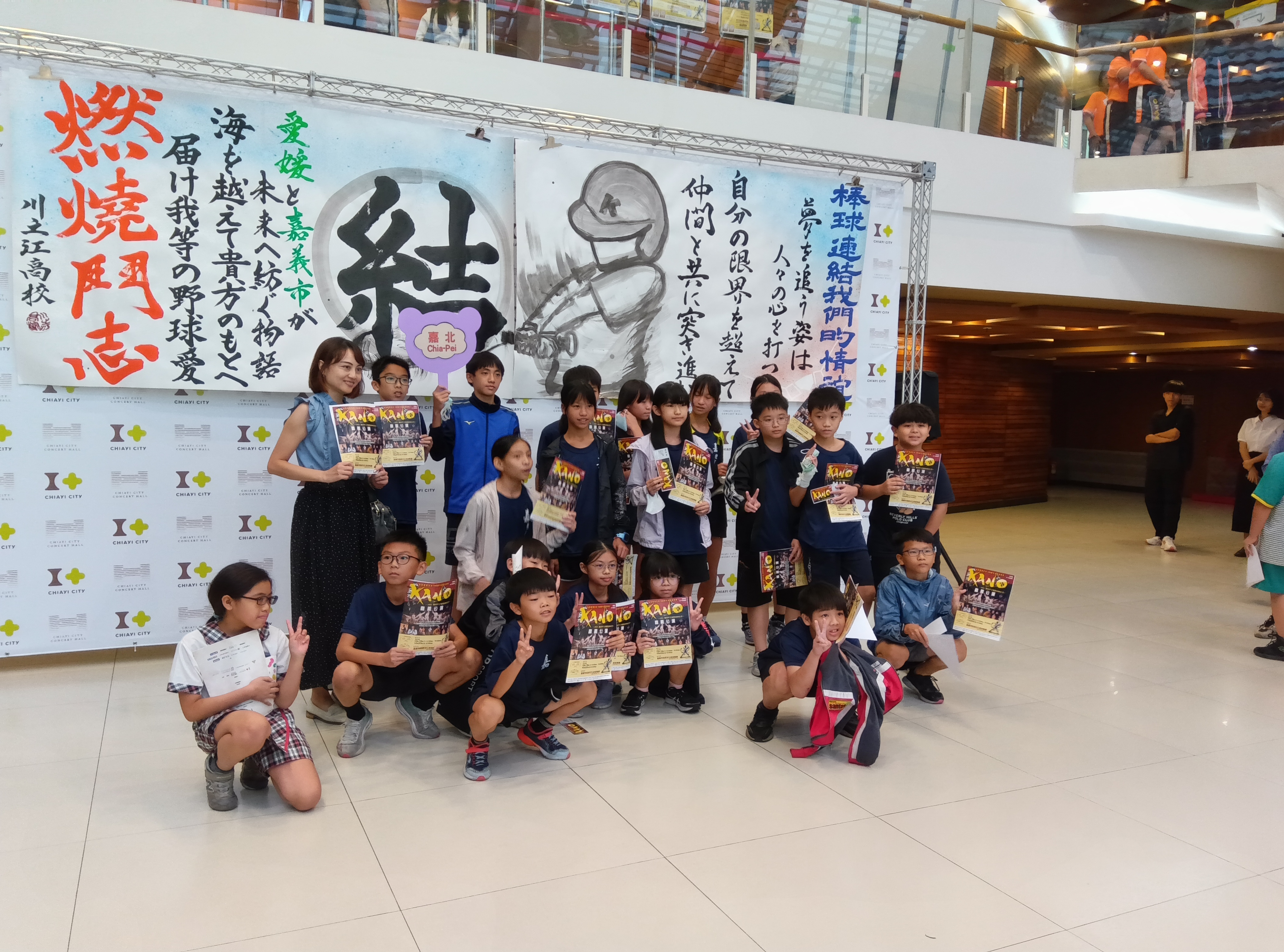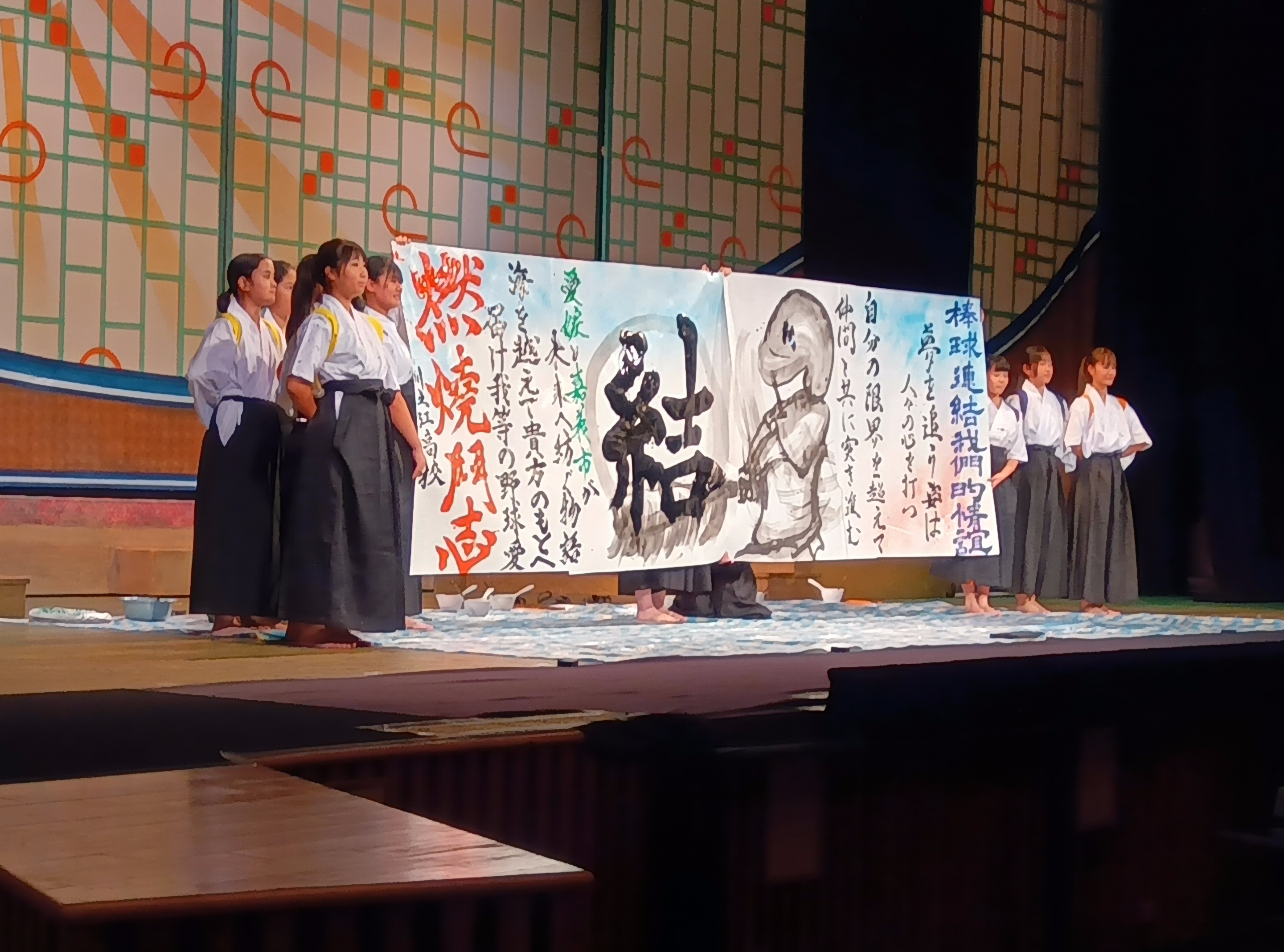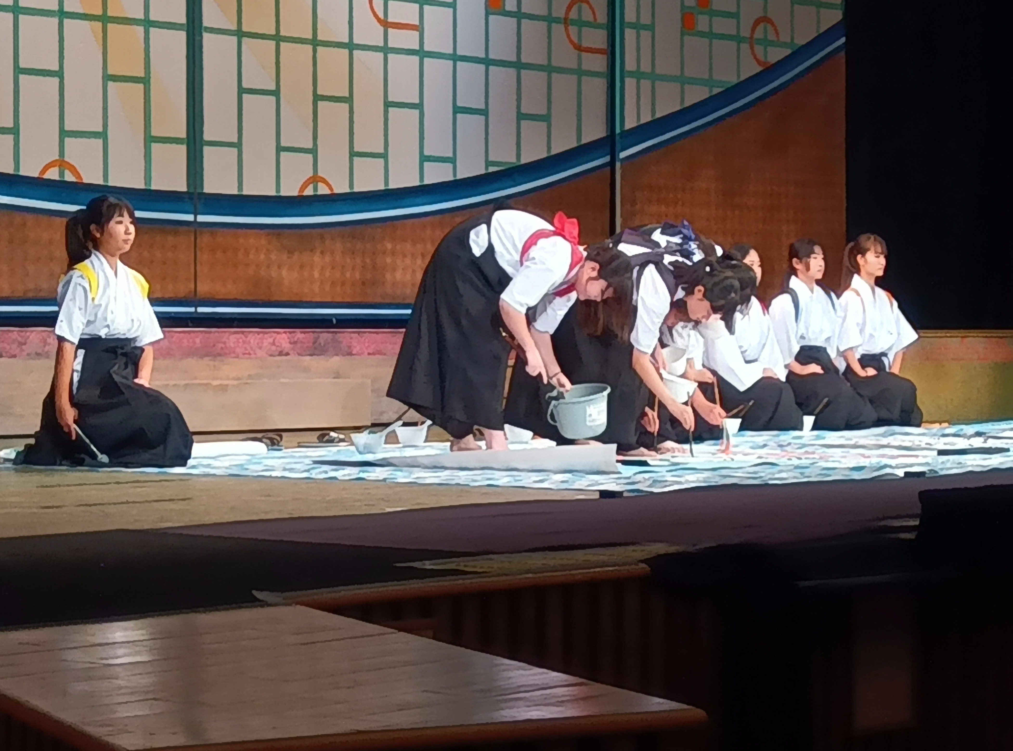 この日は地元の子供たちを招いての招待公演が行われ、本校書道部も見に来てくださった大勢の子どもたちの前で、作り上げてきたパフォーマンスを披露しました。